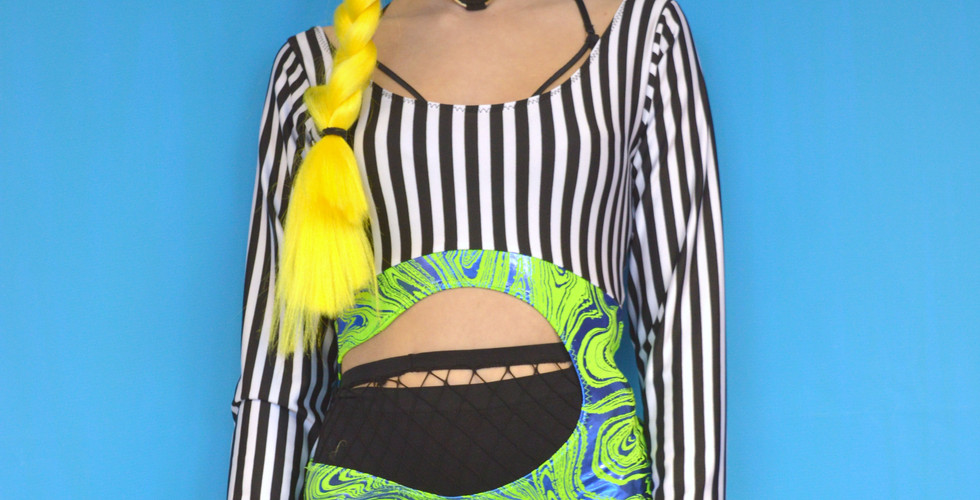 A swimsuit with a little cut out, mini shorts and low back was our favorite so I've got green light for making a sample and it looked something like this!